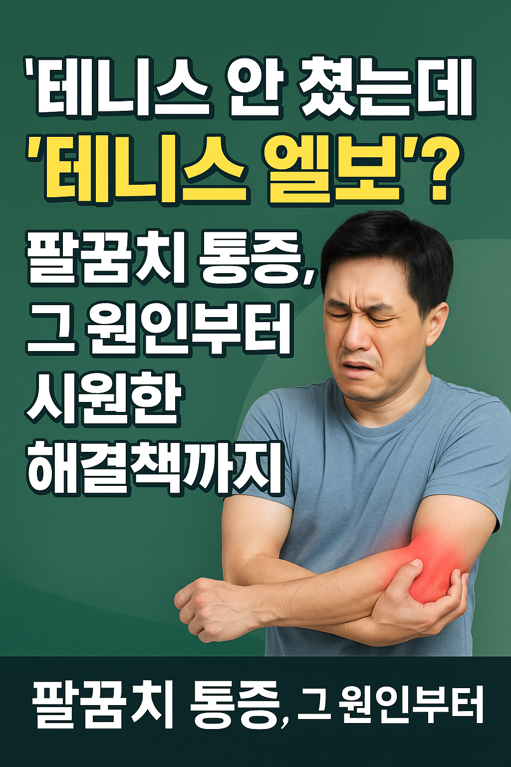 안녕하세요, 여러분의 건강을 책임지는 '검은불독'입니다! 🐶💪 혹시 팔꿈치 바깥쪽이 시큰거리고, 물건을 들거나 문고리를 돌릴 때 통증이 느껴진 적 있으신가요? 😢 테니스를 쳐본 적도 없는데 '테니스 엘보'라는 말을 듣게 되어 당황하셨을 수도 있습니다. 사실 테니스 엘보는 테니스 선수뿐만 아니라, 주부, 직장인 등 다양한 분들에게 흔하게 발생하는 팔꿈치 통증 질환입니다. 오늘은 테니스 엘보의 정확한 원인부터 자가 진단법, 그리고 집에서 할 수 있는 운동법과 꼭 병원에 가야 하는 시점까지 자세히 알려드릴게요. 이 글을 통해 팔꿈치 통증에서 벗어나 편안한 일상을 되찾으시길 바랍니다! ✨